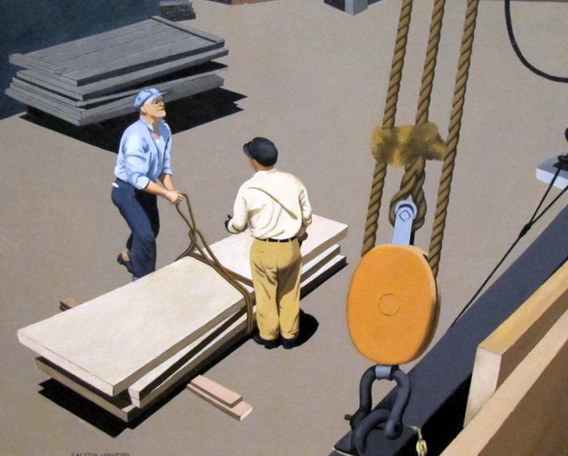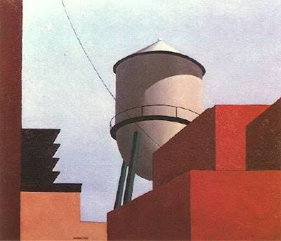 Despite the emotional void or anxiety the theme Precisionist paintings can evoke, I find them to be relaxing to view. Maybe that sense of isolation is comfortable because of my urban upbringing. In a way this emotion is similar to the solitude I also experienced when I spent time in the forests of New York State’s Catskills Mountains and landscapes of the Shawangunk Ridge. The geometric shapes employed in these paintings and choice of muted colors, adds to that sense of calm.
