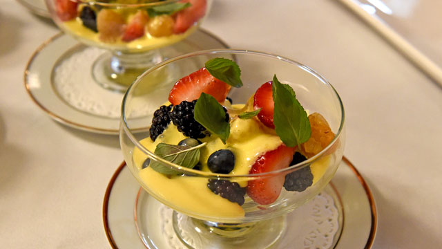 When I opened Dominic’s, I had to have this traditional dessert on my menu but I also wanted it to be enjoyed by a wide range of guests. My solution was simple, replace the fortified wine with the almond flavored liqueur Amaretto, cool the custard, and fold in whipped cream.
