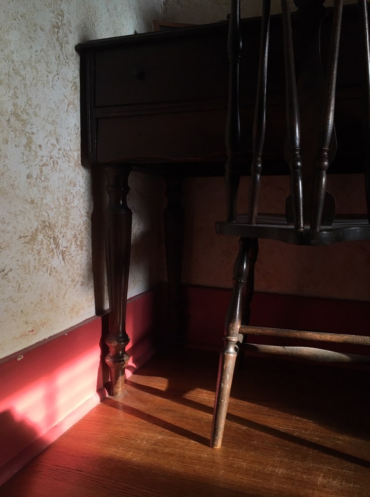 He heard the old woman moving upstairs, a cane poking the floor then the shuffling of feet in slippers. He stepped away from the table and went up to help her.